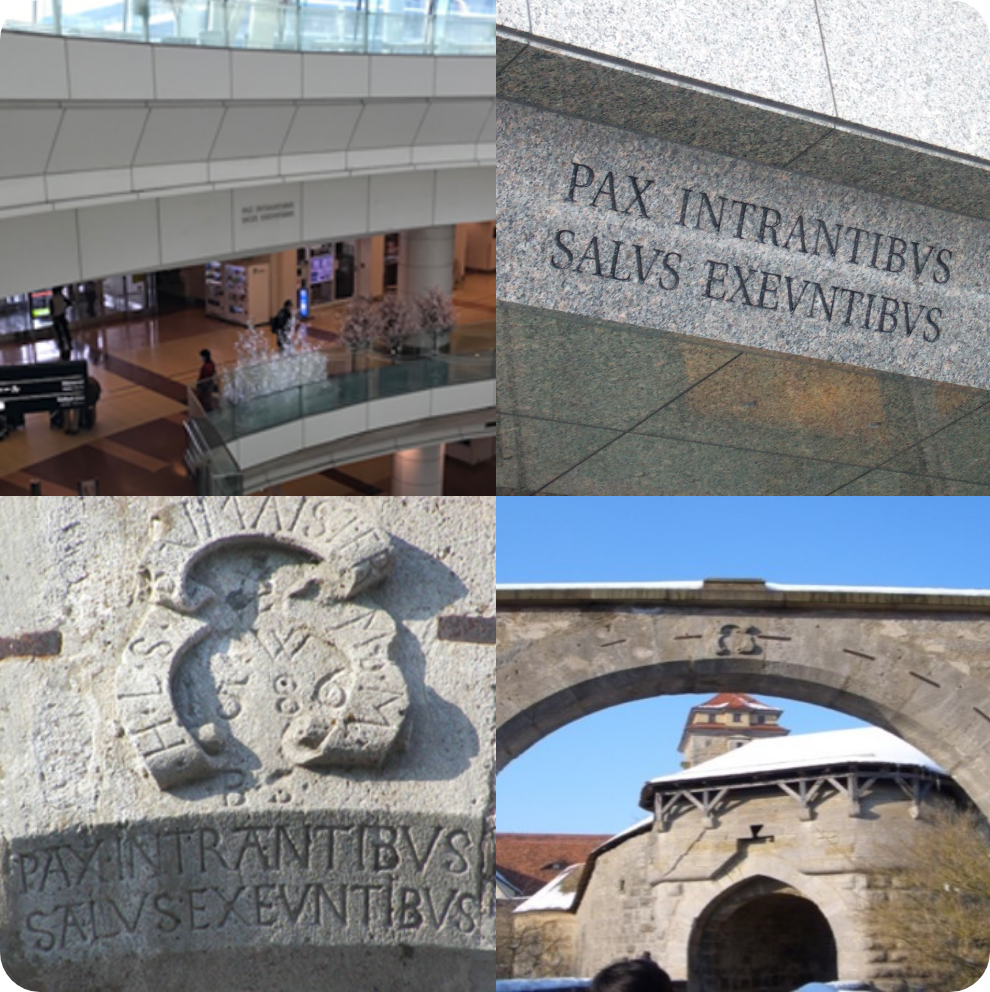 このラテン語の銘文は、中世の風情を色濃く残す珠玉の城塞都市、ドイツ連邦共和国ローテンブルク市のシュピタール門に刻まれ、訪れる人々を静かに迎えてくれます。