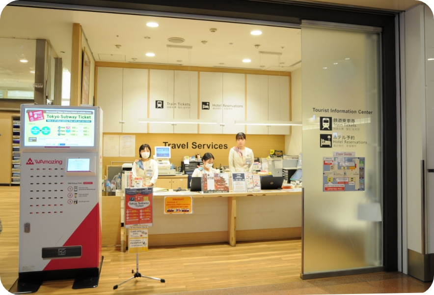 • 観光情報センター(訪日外国人向けの観光案内や鉄道乗車券、観光券等の発券)