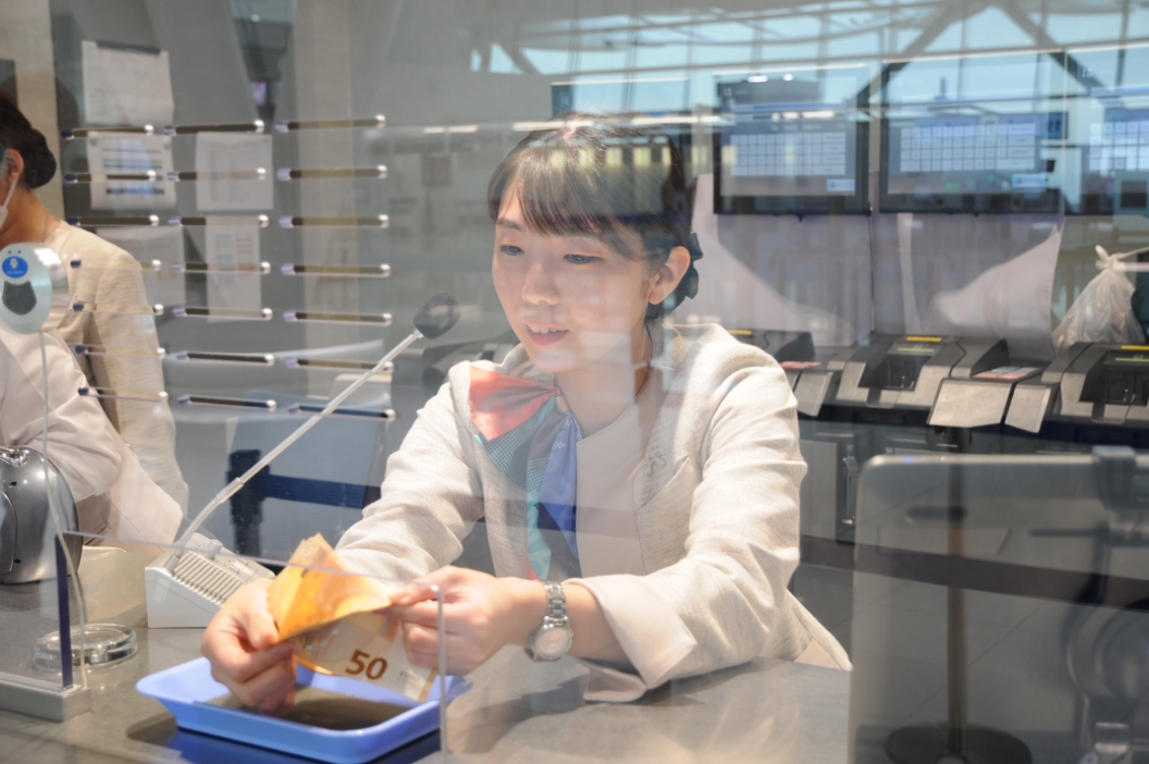 外貨両替所窓口における外貨の両替対応、外貨両替自動販売機のメンテナンス、オンライン外貨両替サービスのサポート 等